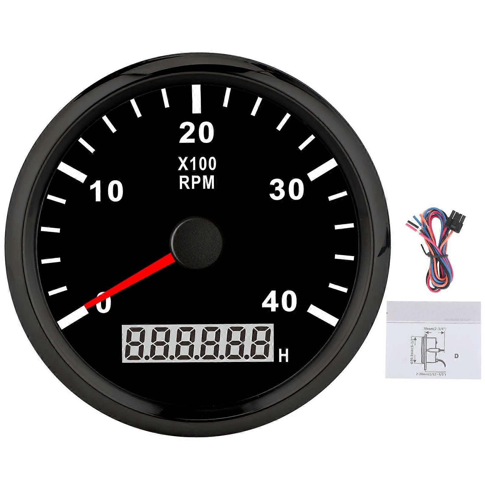 85mm Pointed Boat Tachometer LCD Digital 4000RPM with Red Backlight IP67 Waterproof 12V/24VBlack Dial Black Cover