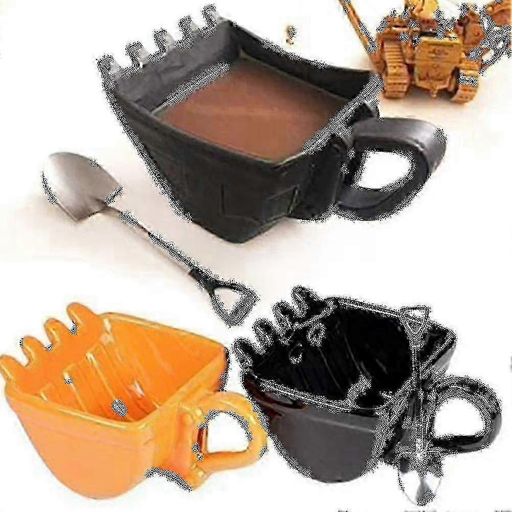 3D Yellow Excavator Bucket Coffee Mug with Shovel Spoon - Black