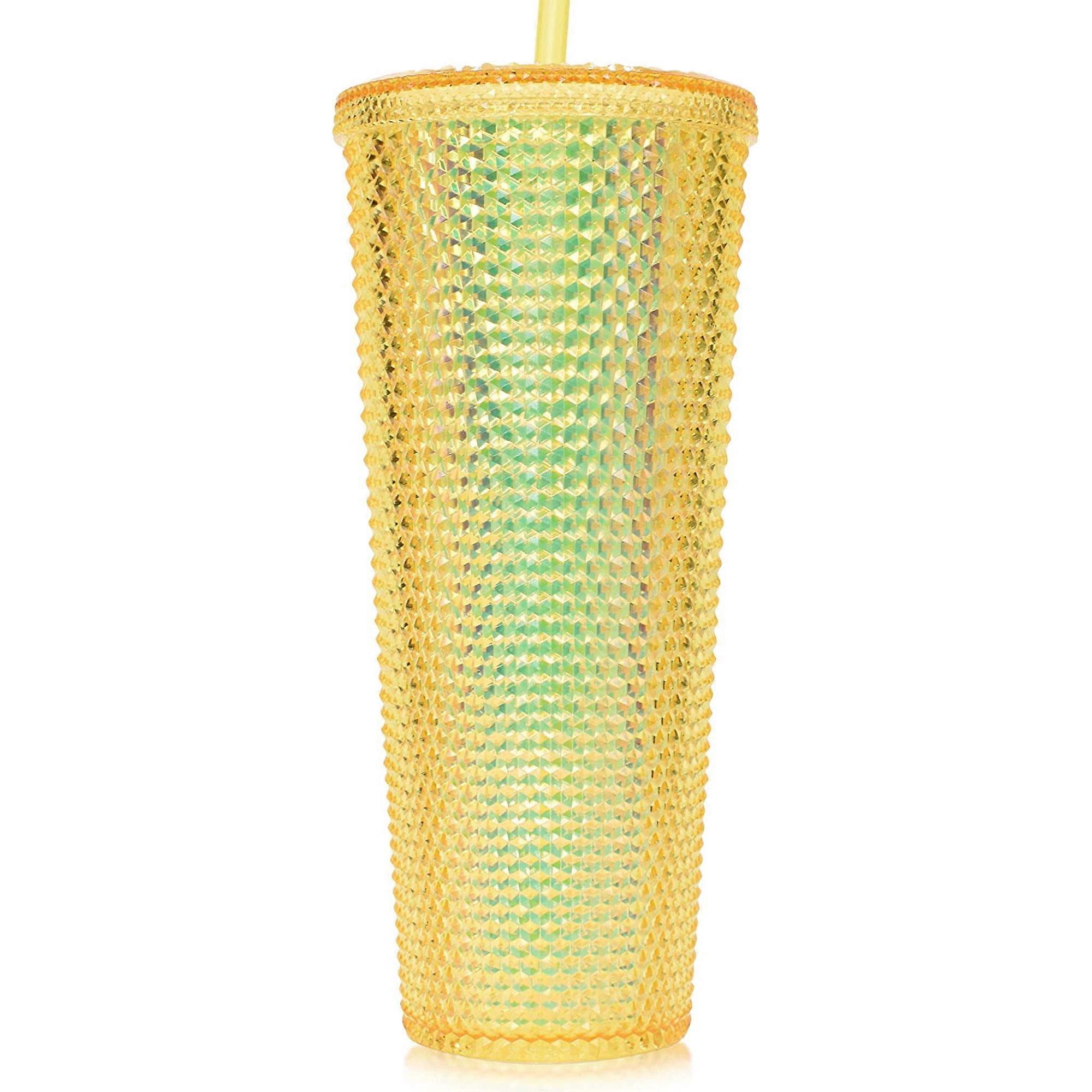 24oz Studded Water Cup with Lid & Straw, Leak-Proof Tumbler Compatible with Iced Coffee, Reusable (Circle Durian Cup, Transparent Yellow) by Tutuviw