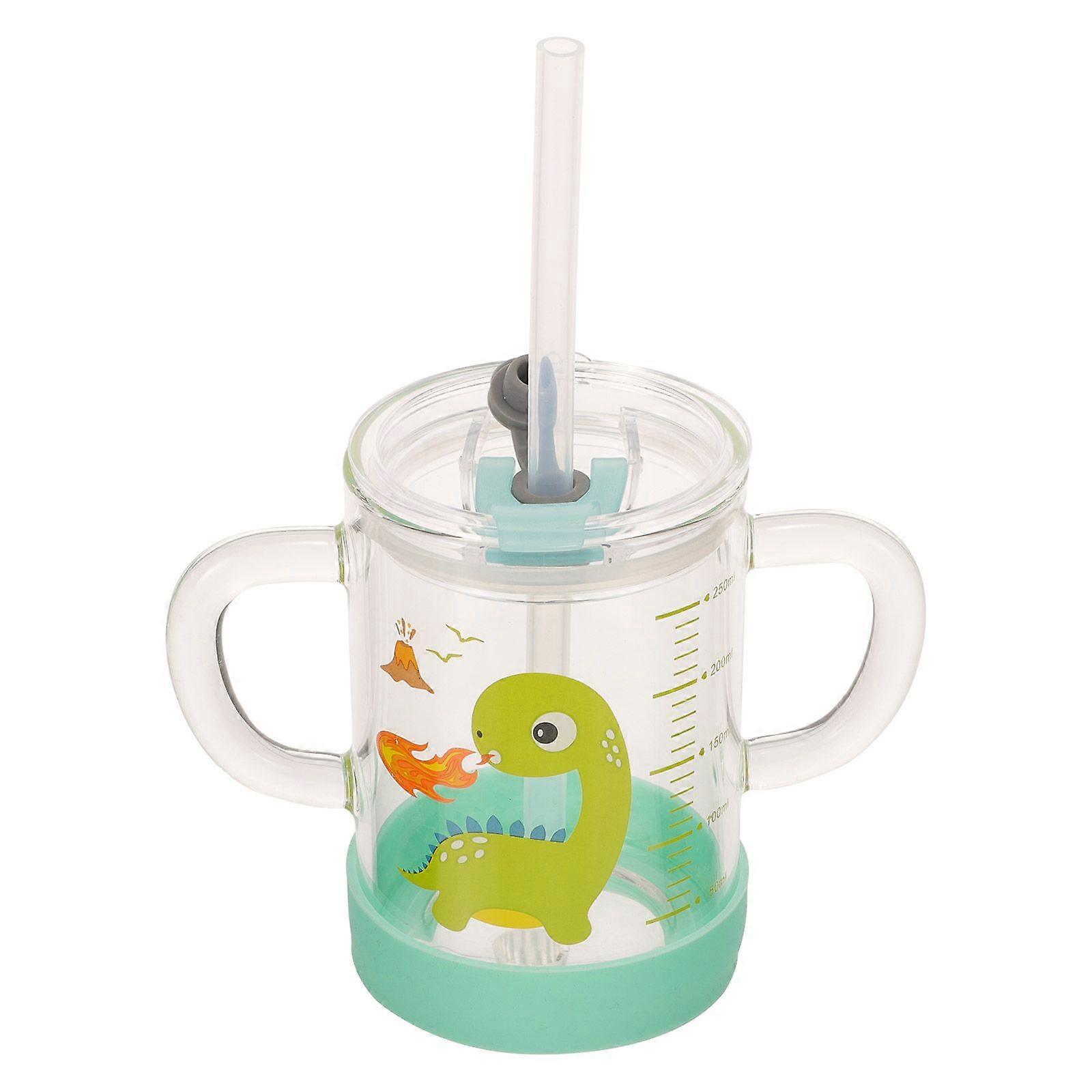 Glass Juice Cup Double Handle Water Cup Lovely Dinosaur Water Cup Glass Tumbler With Straw