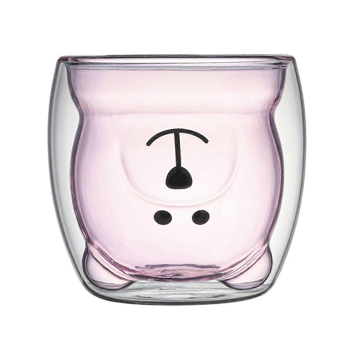 Colorful household cartoon cute bear cup with handle milk cup double insulation borosilicate transparent juice cups
