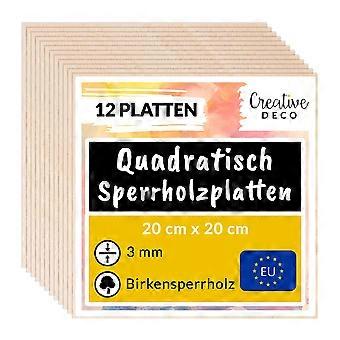 12 Quadratische Sperrholzplatte 3mm, 200 x 200 mm, Birkensperrholz, Dünne Holz-Zuschnitte, für Brandmalerei, Laserschnitt Creative Deco