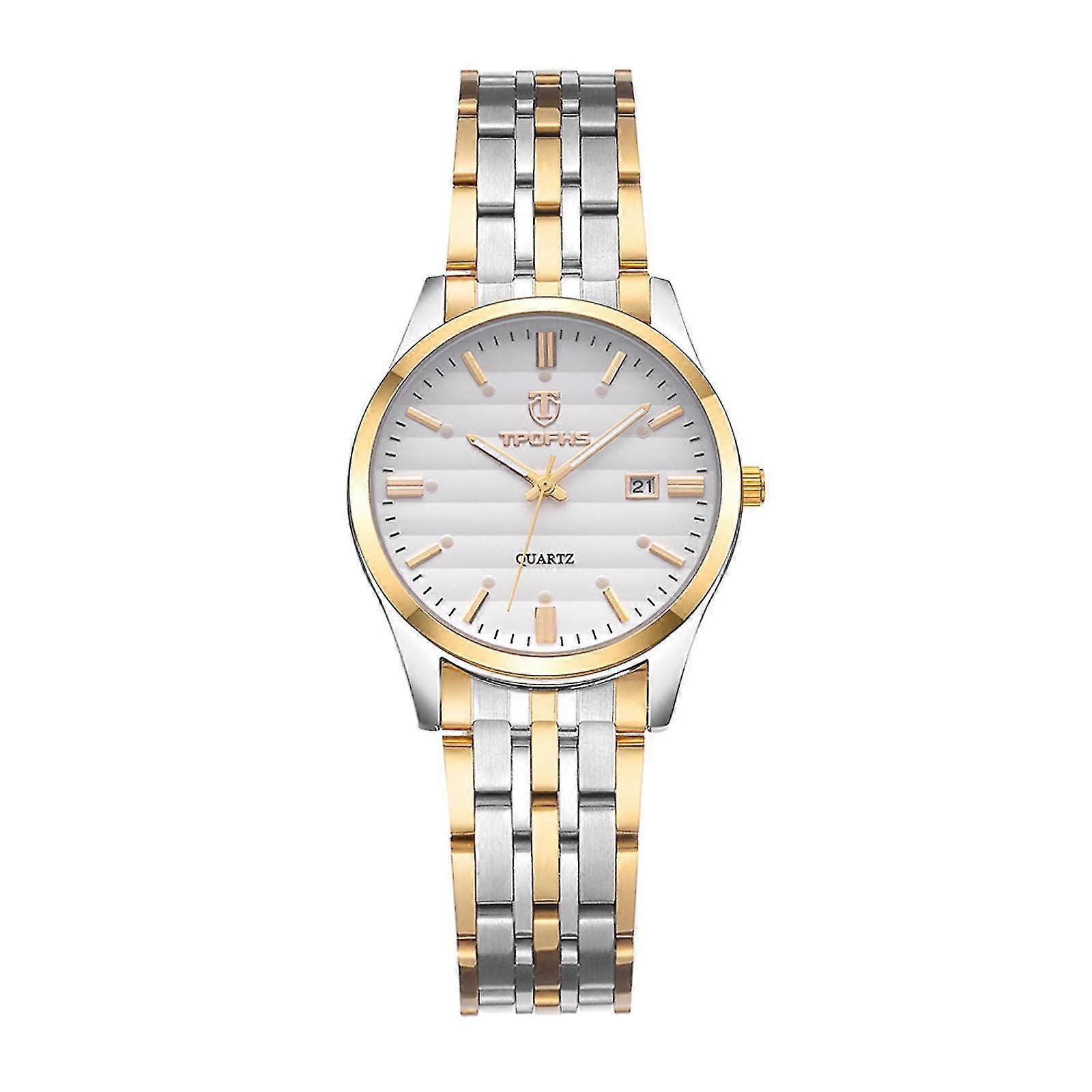 Tpofhe Lectroplating Stack Buckle Adjustable Couple Steel Strap Watch