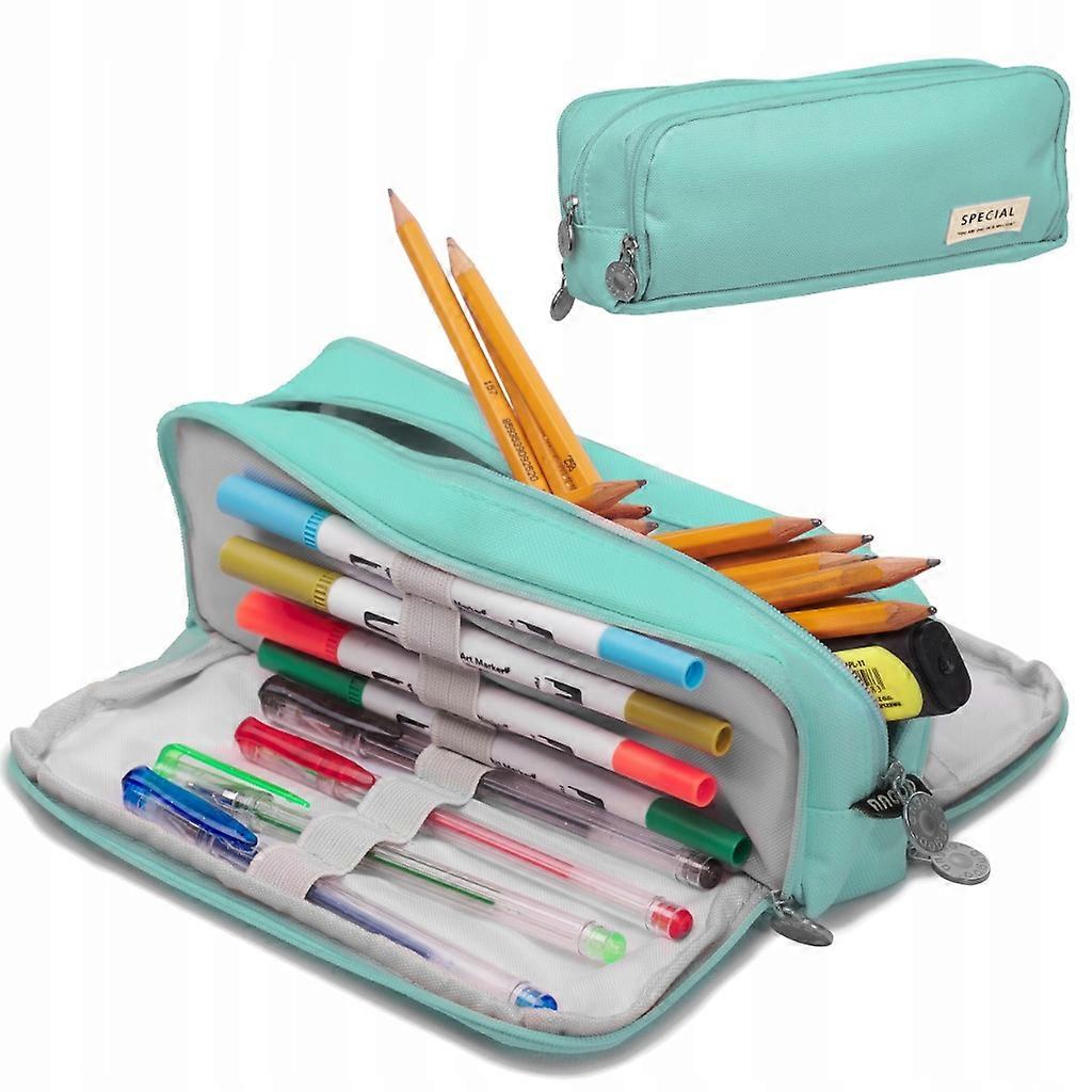 Three-fold school pencil case sachet, cosmetic bag 3in1 School pencil case, triple, cosmetic bag, blue A capacious pencil case will certainly accommodate all the necessary school supplies, i.e. pens, crayons, markers, ruler. It is also perfect as a cosmetic bag or travel sachet. It will also successfully replace a traditional wallet. It will help you organize all stationery, cosmetics or other small items in your purse or backpack. Modern design will delight children and adults. It can be used at school, university and in the office. The sachet has 3 chambers, each fastened with a zipper. In the side compartments there are small pockets and elastic bands for easy attachment of accessories. Made of durable material that guarantees long use The big advantage of the sachet is its small size, thanks to which it will fit in any backpack or purse, while taking up little space. Despite its small size, it is very roomy, it will certainly fit all the most important writing instruments. Pencil case features: Extremely roomy - equipped with 3 chambers Equipped with smaller internal pockets and elastic bands to help organize accessories The sachet is perfect as a pencil case; toiletry bags, wallet or travel sachet. Durable material Aesthetic appearance Fastened with a zipper the pencil case is sold without accessories Material: polyester Number of compartments: 3 fastened with zippers Material: polyester Pencil case dimensions: 22cm x 5cm x 9cm Package dimensions: 28cm x 13.5cm x 3cm Packed in a foil package. volume: 0.0