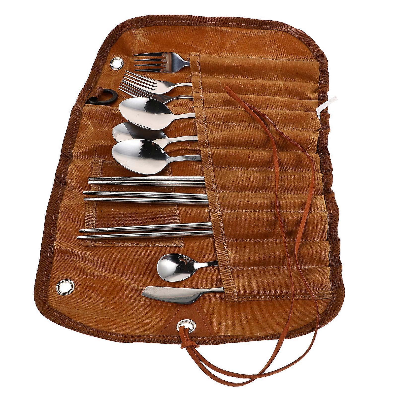Utensils Set Stainless Steel Camping For Enjoyable Dining Experiences In Nature Includes Bag 1 Set