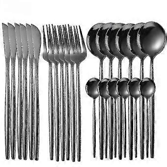 Luxury Stainless Steel Tableware 24-Piece Gold Dinnerware Set Suitable for Home Use, Including Knife, Fork, Spoon - Dishwasher Safe Cutlery