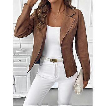 Women's Casual PU Faux Suede Lapel Waist Jacket, Autumn
