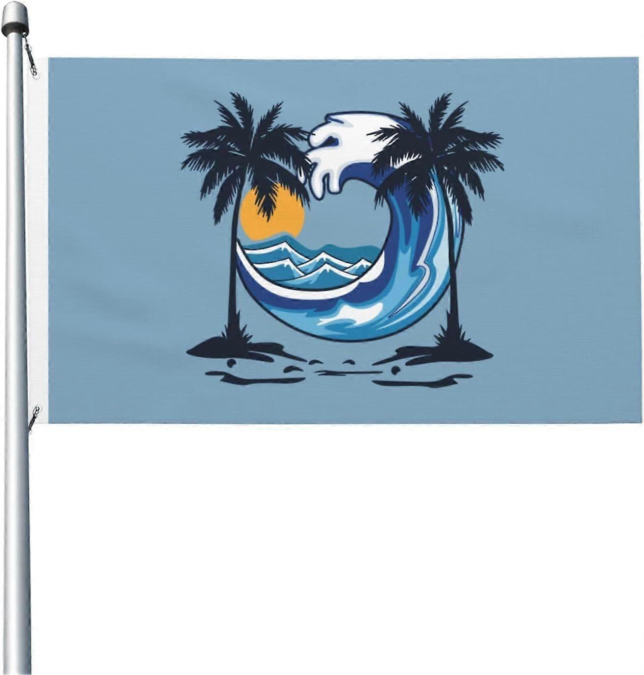 Waves And Palm Trees In Summer Flag QI 1902