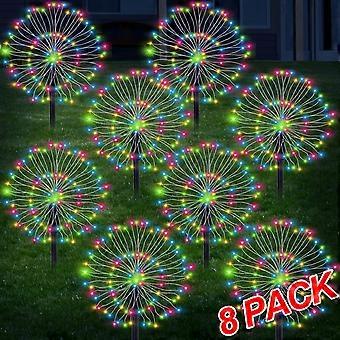 8 Pack 480 LED Solar Garden Firework Lights, IP65 Waterproof, Outdoor Sparklers for Yard, Pathway, Patio Decor (Colorful/Warm)