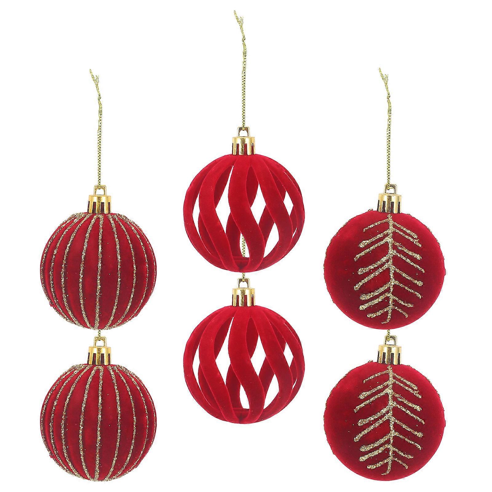 Xmas Tree Hanging Ornaments Red Plastic Flocking Balls Set of 30